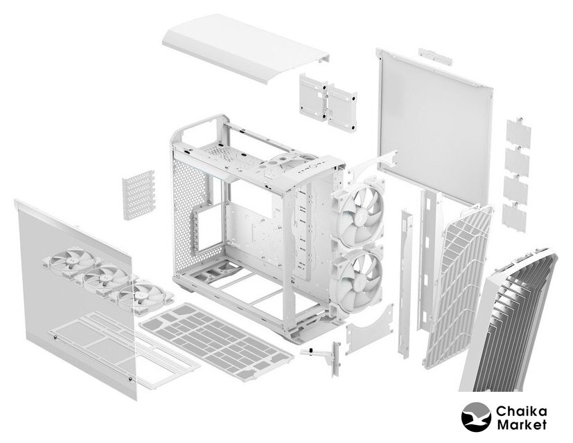 Mid Tower, БП отсутствует, для плат ATX/micro-ATX/eATX/mini-ITX/SSI CEB, в комплекте 2 вентилятора, окно: закаленное стекло, видеокарта до 330 мм, охлаждение ЦП до 174 мм, пылевые фильтры, 2xUSB-A 3.2 5Гбит/с, 1xUSB-C 3.2 10Гбит/с, цвет белый