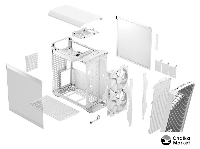 Mid Tower, БП отсутствует, для плат ATX/micro-ATX/eATX/mini-ITX, в комплекте 3 вентилятора с контроллером вращения, окно: закаленное стекло, видеокарта до 430 мм, охлаждение ЦП до 185 мм, пылевые фильтры, 2xUSB-A 3.2 5Гбит/с, 1xUSB-C 3.2 10Гбит/с, цвет белый