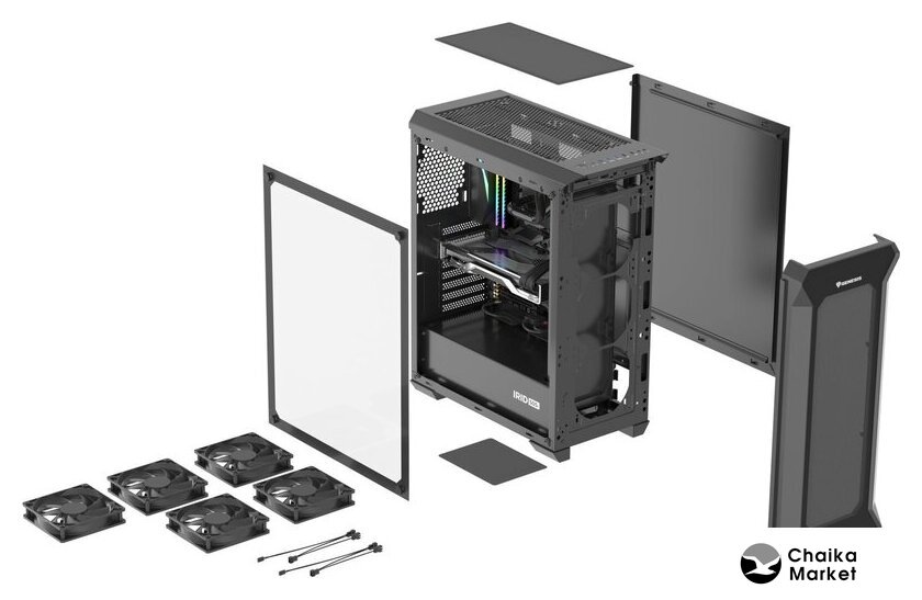 Mid Tower, БП отсутствует, для плат ATX/micro-ATX/mini-ITX, в комплекте 3 вентилятора, окно: закаленное стекло, видеокарта до 405 мм, охлаждение ЦП до 170 мм, пылевые фильтры, 2xUSB-A 3.2 5Гбит/с, цвет черный