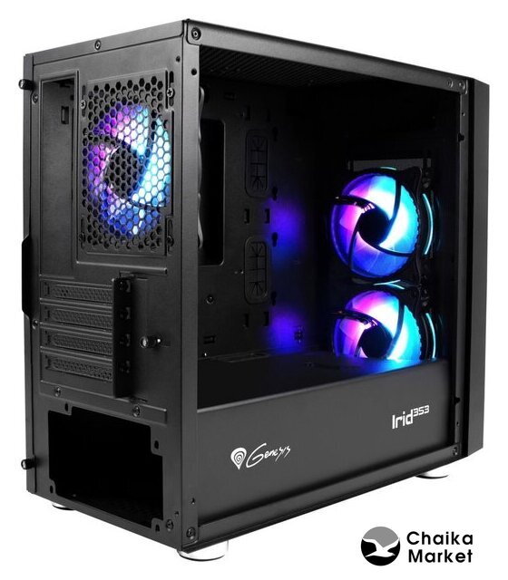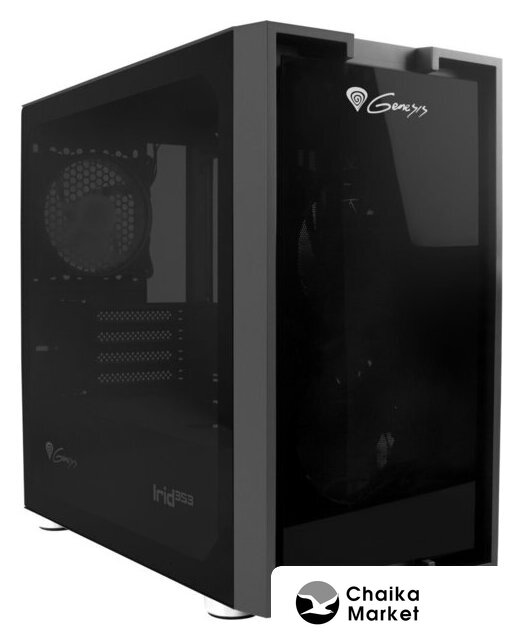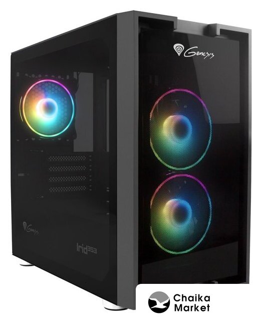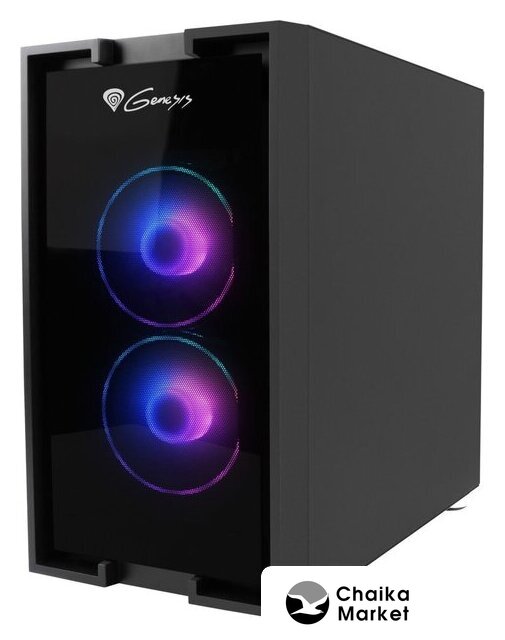 Mid Tower, БП отсутствует, для плат ATX/micro-ATX/mini-ITX, в комплекте 4 вентилятора, окно: закаленное стекло, видеокарта до 380 мм, охлаждение ЦП до 175 мм, пылевые фильтры, 2xUSB-A 3.2 5Гбит/с, цвет черный