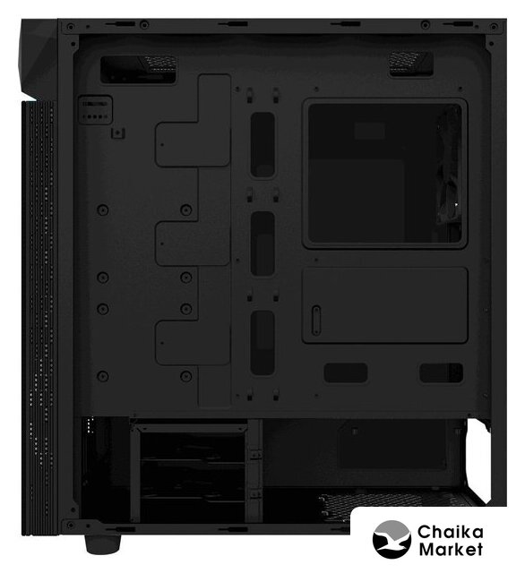 Mini Tower, БП отсутствует, для плат micro-ATX/mini-ITX, в комплекте 4 вентилятора, окно: закаленное стекло, видеокарта до 375 мм, охлаждение ЦП до 163 мм, пылевые фильтры, 2xUSB 2.0, 1xUSB-A 3.2 5Гбит/с, цвет черный