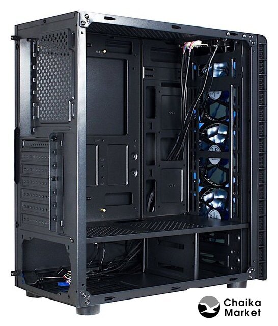 Mid Tower, БП отсутствует, для плат ATX/micro-ATX/mini-ITX, в комплекте 4 вентилятора, окно: закаленное стекло, видеокарта до 349 мм, охлаждение ЦП до 166 мм, 1xUSB 2.0, 2xUSB-A 3.2 5Гбит/с, цвет черный