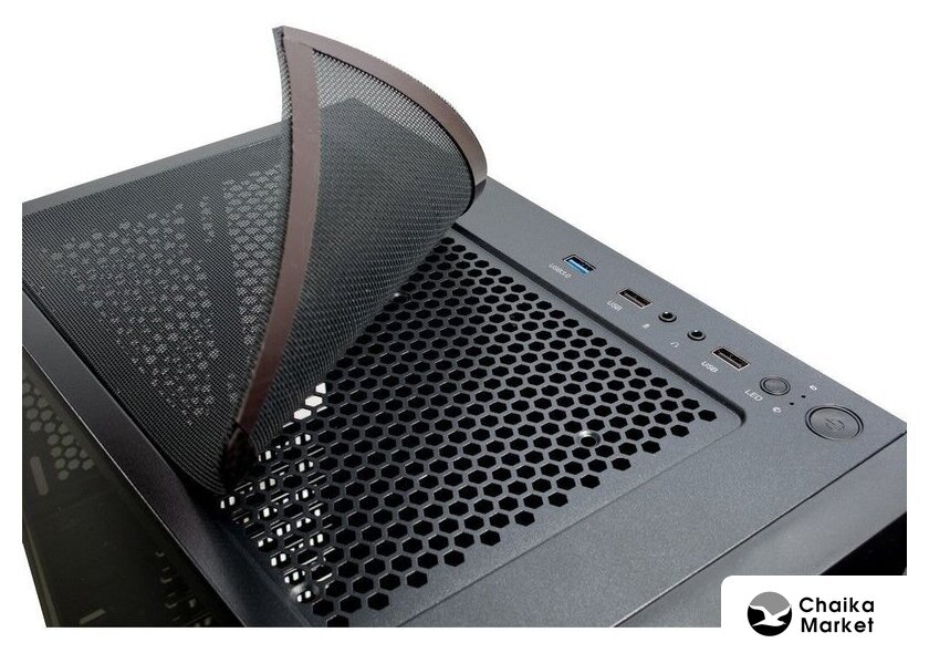 Mid Tower, БП отсутствует, для плат ATX/micro-ATX/mini-ITX, в комплекте 3 вентилятора, окно: закаленное стекло, видеокарта до 330 мм, охлаждение ЦП до 166 мм, пылевые фильтры, 2xUSB-A 3.2 5Гбит/с, цвет черный