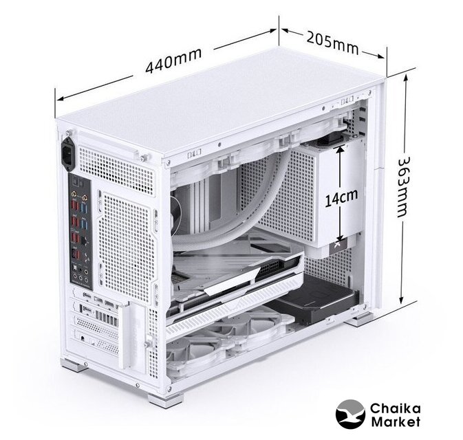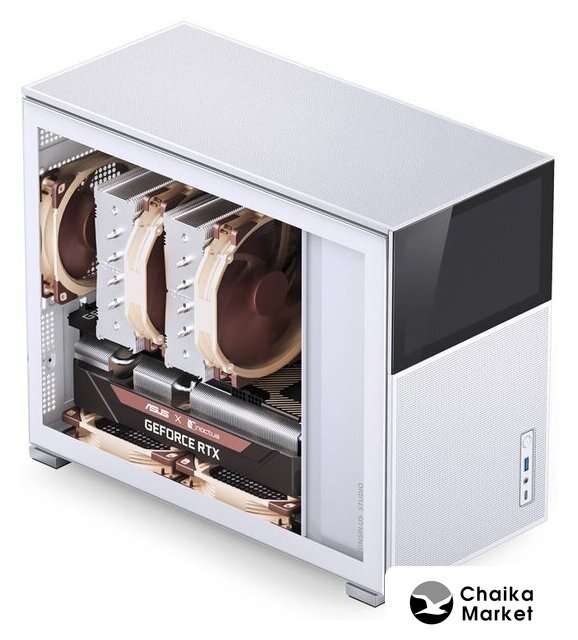Mini Tower, БП отсутствует, для плат mini-DTX/mini-ITX, в комплекте 2 вентилятора, окно: закаленное стекло, видеокарта до 331 мм, охлаждение ЦП до 167 мм, пылевые фильтры, 2xUSB-A 3.2 5Гбит/с, 1xUSB-C 3.2 10Гбит/с, цвет белый