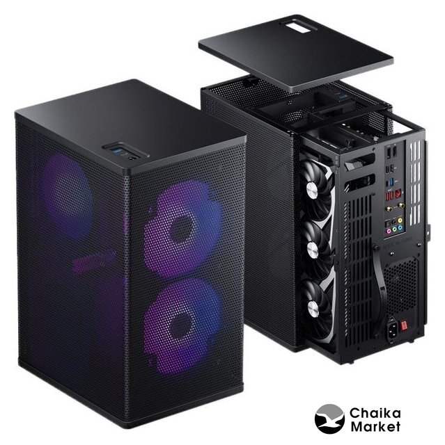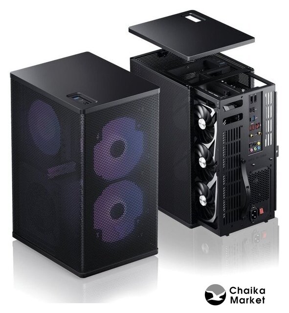 Mini Tower/горизонтальный/вертикальный настольный, БП отсутствует, для плат mini-ITX, в комплекте 2 вентилятора, видеокарта до 325 мм, 2xUSB-A 3.2 5Гбит/с, 1xUSB-C 3.2 10Гбит/с, цвет черный
