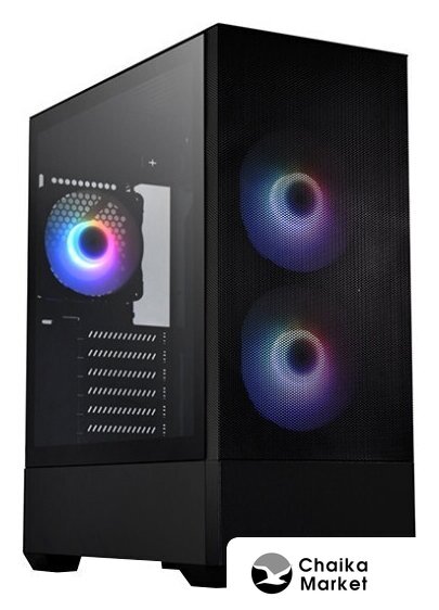 Mini Tower, БП отсутствует, для плат micro-ATX/mini-ITX, в комплекте 3 вентилятора, окно: закаленное стекло, видеокарта до 420 мм, охлаждение ЦП до 173 мм, 1xUSB-A 3.2 5Гбит/с, 1xUSB-C 3.2 5Гбит/с, цвет черный