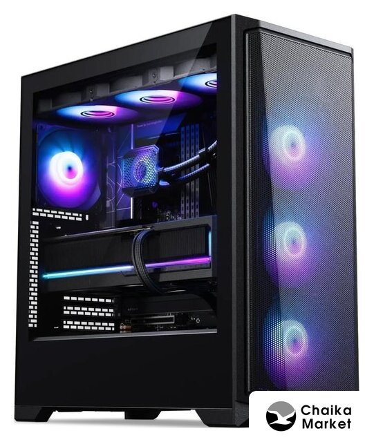 Mid Tower, БП отсутствует, для плат ATX/micro-ATX/mini-ITX, в комплекте 6 вентиляторов, окно: закаленное стекло, видеокарта до 330 мм, охлаждение ЦП до 160 мм, пылевые фильтры, 2xUSB-A 3.2 5Гбит/с, цвет черный
