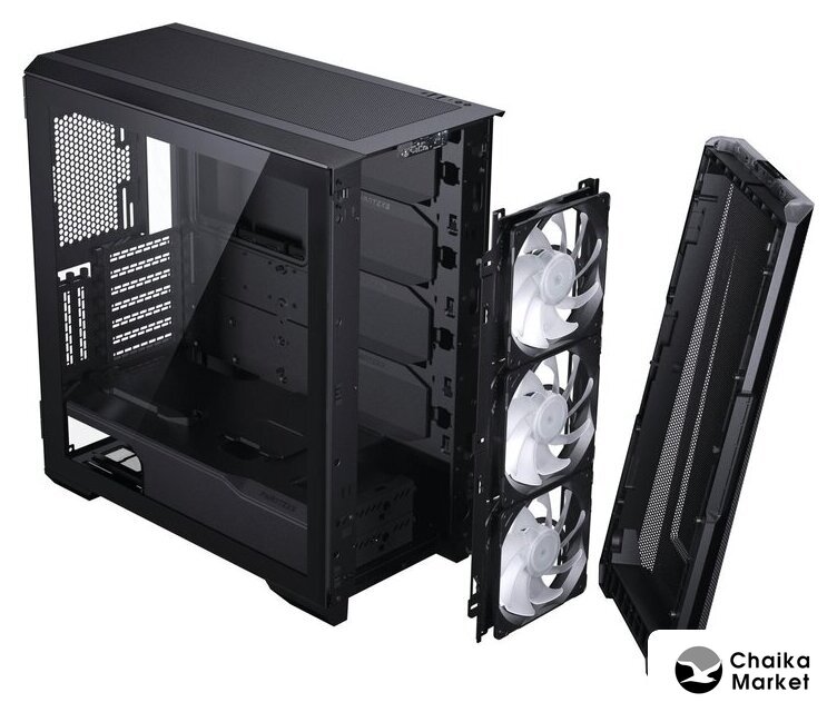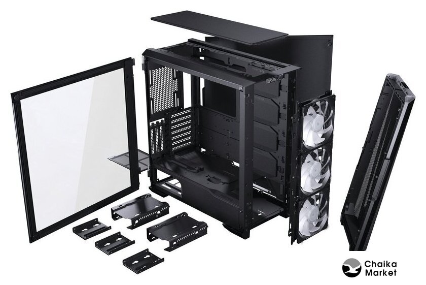 | Расположение вентиляторов | спереди: 3x 120мм/ 3x 140 мм, сверху: 3x 120мм/ 3x 140 мм, сзади: 1x 120мм/ 1x 140 мм |