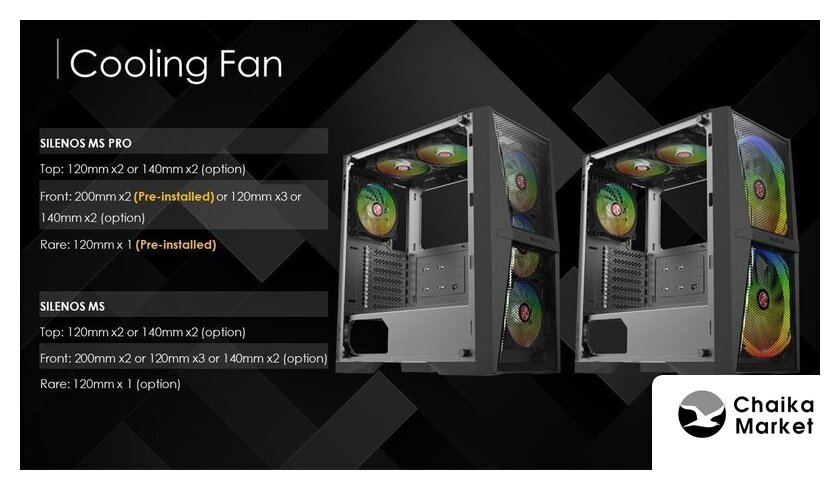 Установленные вентиляторы | 0 (2 спереди, 1 сзади) |