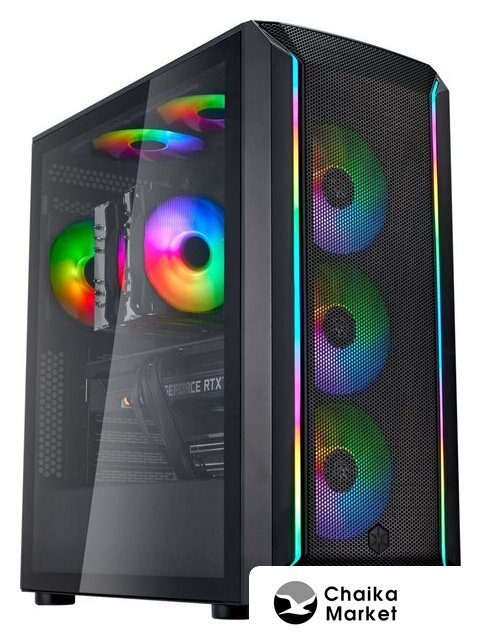 Full Tower, БП отсутствует, для плат ATX/micro-ATX/mini-ITX, в комплекте 4 вентилятора, видеокарта до 430 мм, охлаждение ЦП до 185 мм, пылевые фильтры, 2xUSB-A 3.2 5Гбит/с, цвет черный