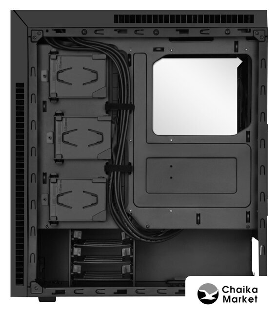 Mid Tower, БП отсутствует, для плат ATX/micro-ATX/mini-ITX, в комплекте 3 вентилятора, окно: закаленное стекло, видеокарта до 410 мм, охлаждение ЦП до 180 мм, пылевые фильтры, 2xUSB-A 3.2 5Гбит/с, цвет черный