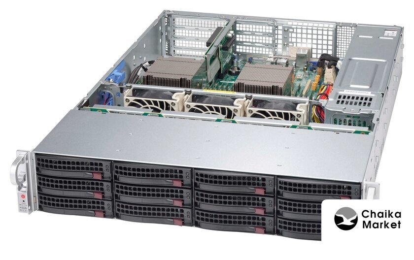 с блоком питания 800 Вт, серверный, RackMount, для плат ATX/eATX, блок питания сверху и/или снизу, 3 вентилятора, цвет черный