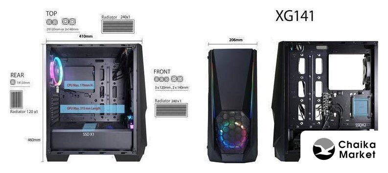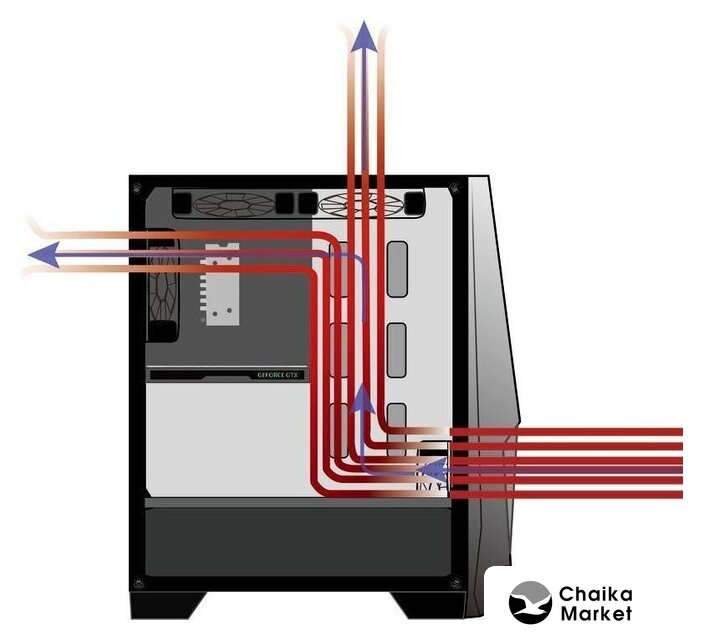 Конфигурация вентиляторов | спереди: 3 x 120 мм или 2 x 140 ммсверху: 2 x 120 мм или 2 x 140 ммснизу: 2 x 120 ммсзади: 1 x 120 мм |