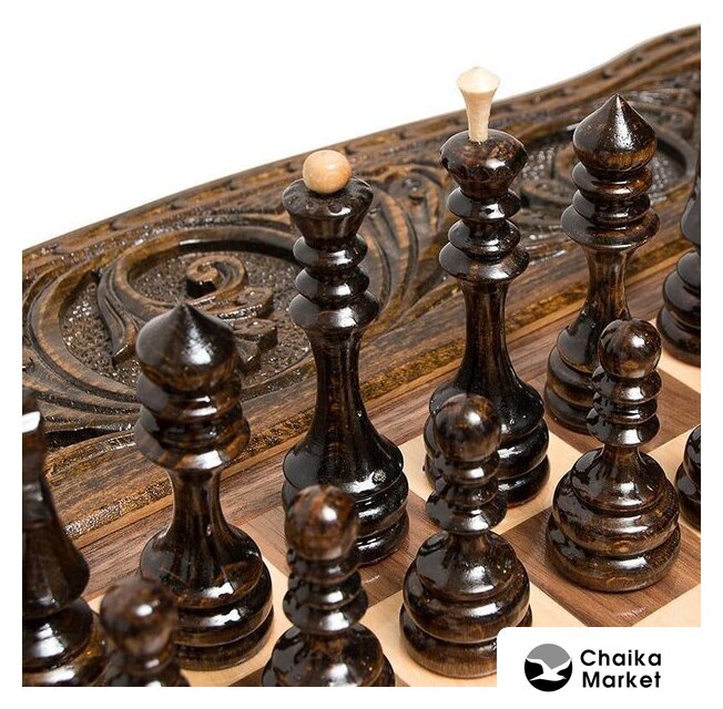 шашки/нарды, дорожные, 60x60 см, фигуры: дерево, доска: дерево, ручная работа