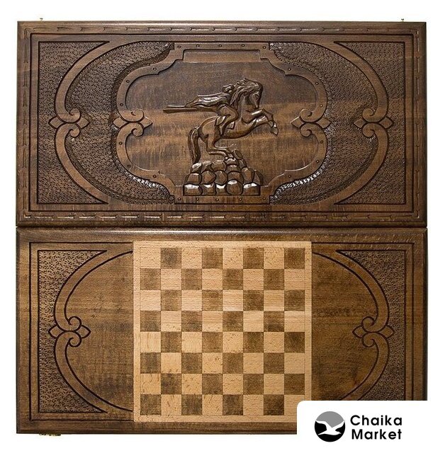 шашки/нарды, 60x60 см, фигуры: дерево, доска: дерево, ручная работа, органайзер