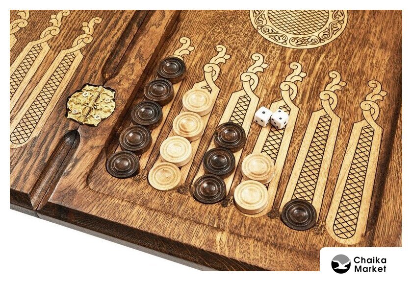 | Комплектация | игровое поле, шашка (16 светлых, 16 тёмных), кубик (2 шт), чехол |