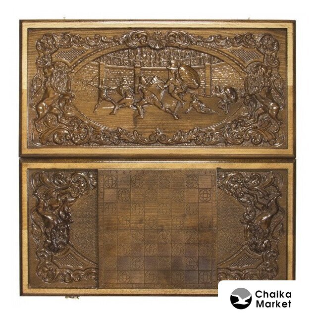 шашки/нарды, 61x70 см, фигуры: дерево, доска: дерево, ручная работа