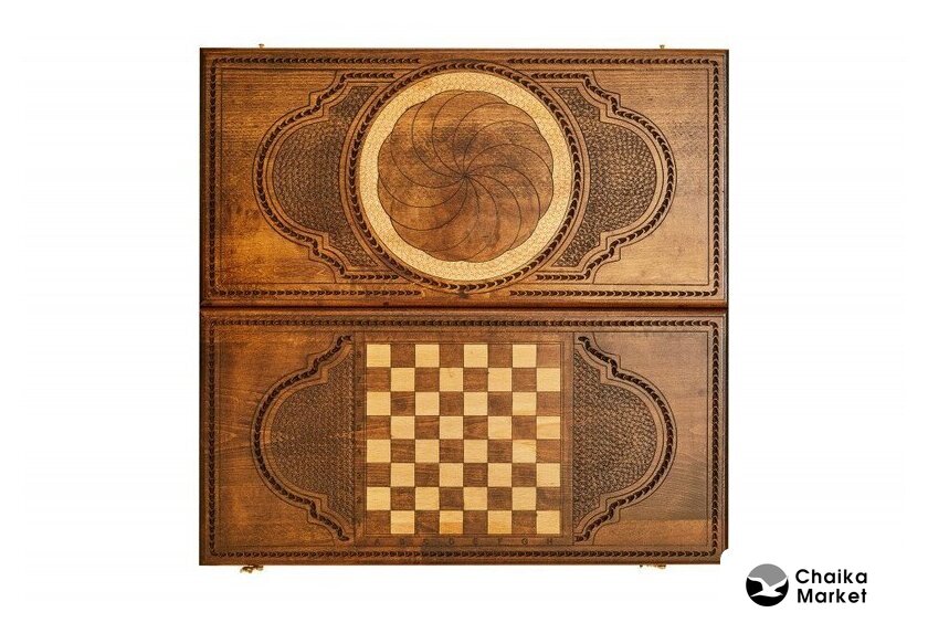 шашки/нарды, 60x60 см, фигуры: дерево, доска: дерево, ручная работа, органайзер