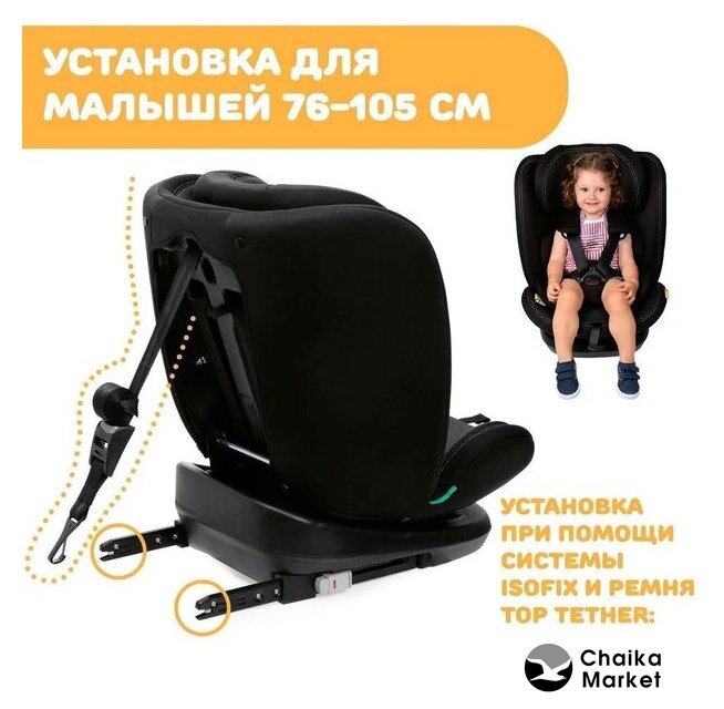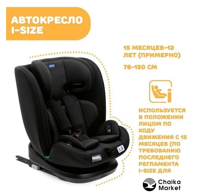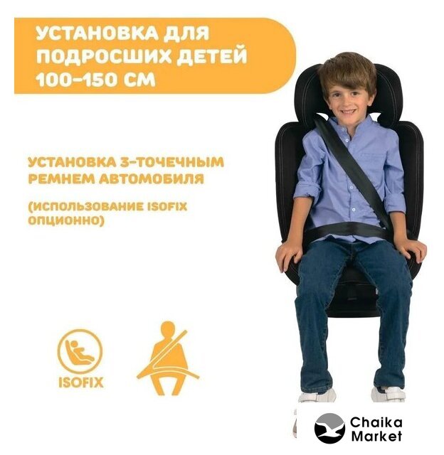 кресло, группа 1/2/3 (9-36 кг), стандарт i-Size, рост 76-150 см, крепление ISOFIX/якорное, ремни: ремень автомобиля/внутренние пятиточечные, боковая защита