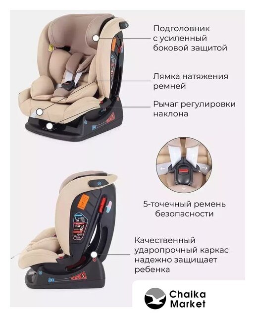 кресло, группа 0/1/2/3 (до 36 кг), крепление посредством ремней автомобиля/ISOFIX/якорное, ремни: внутренние пятиточечные, боковая защита