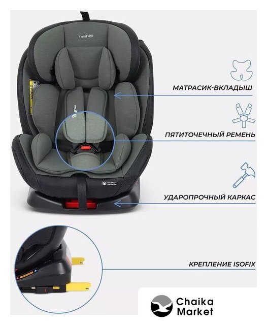 кресло, группа 0/1/2/3 (до 36 кг), крепление ISOFIX/LATCH, ремни: ремень автомобиля/внутренние пятиточечные, боковая защита