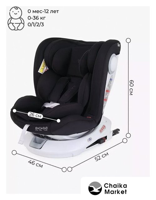 кресло, группа 0/1/2/3 (до 36 кг), крепление ISOFIX, ремни: внутренние пятиточечные, боковая защита