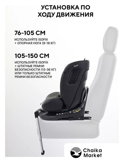 | Крепление | посредством ремней автомобиля, ISOFIX, упор в пол |