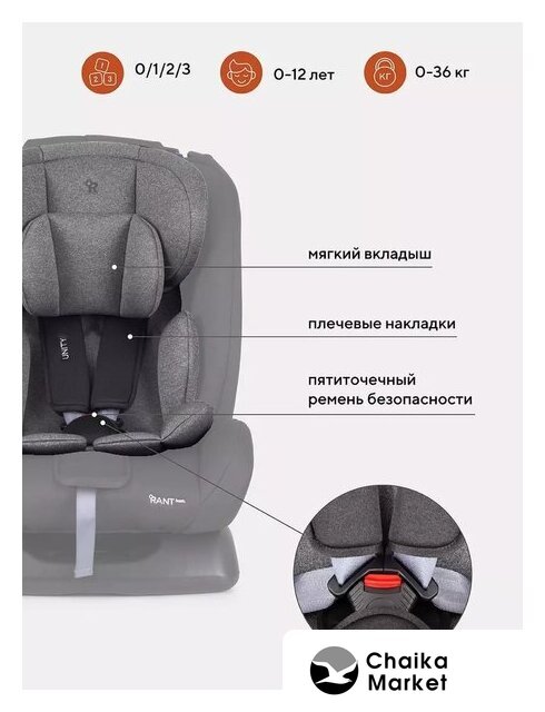 кресло, группа 0/1/2/3 (до 36 кг), крепление ISOFIX/якорное, ремни: ремень автомобиля/внутренние пятиточечные, боковая защита