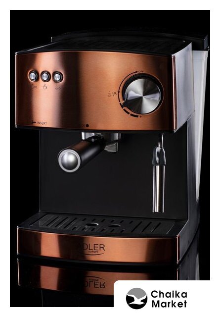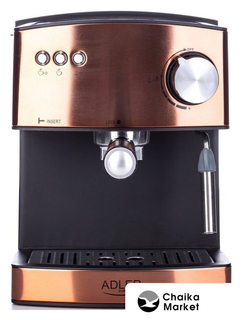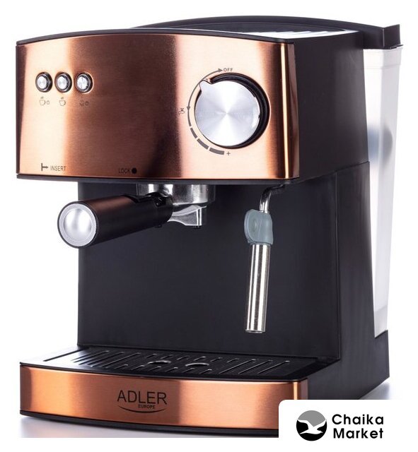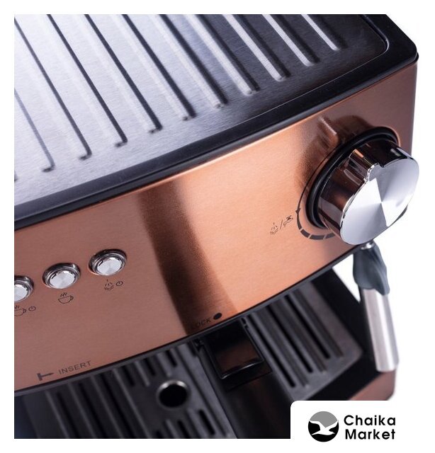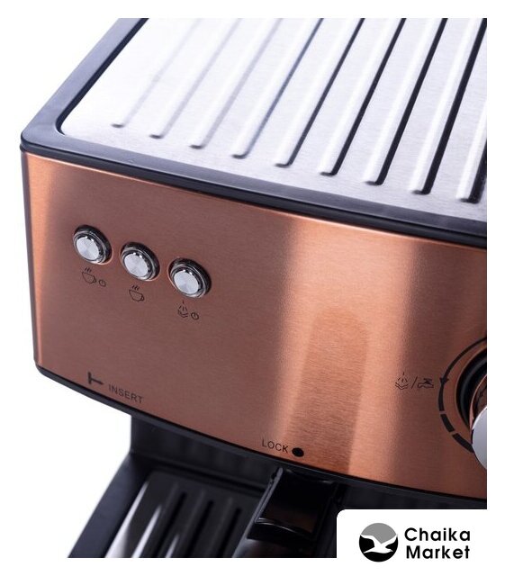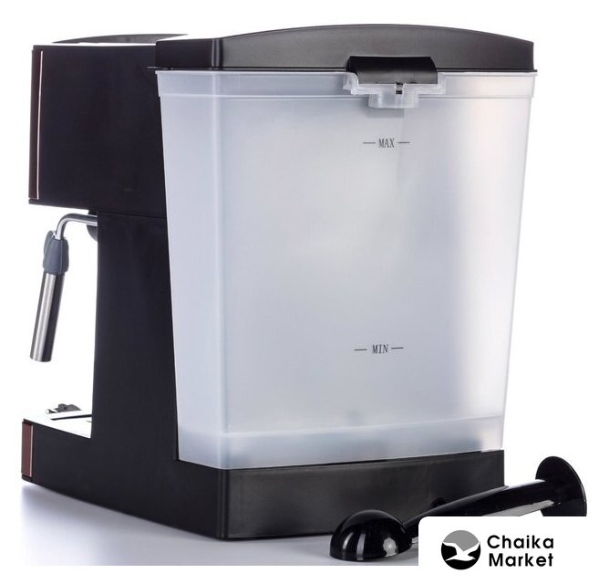 рожковая помповая кофеварка, 850 Вт, корпус металл/пластик, капучинатор ручной, используемый кофе: молотый, цвет нержавеющая сталь/черный