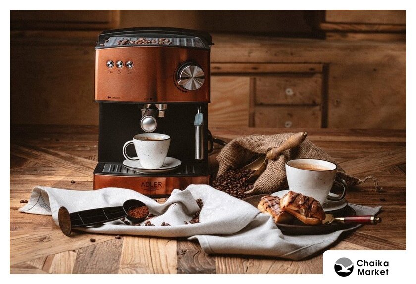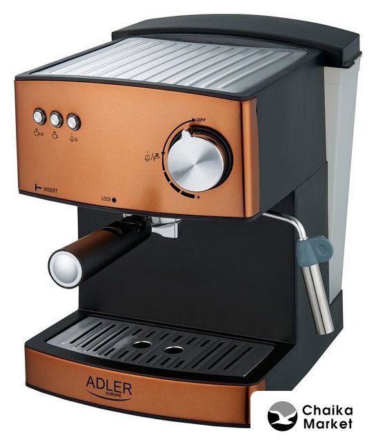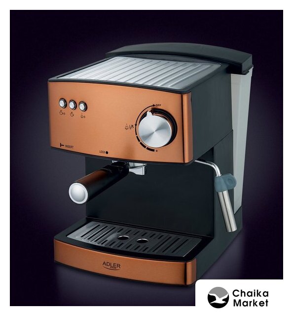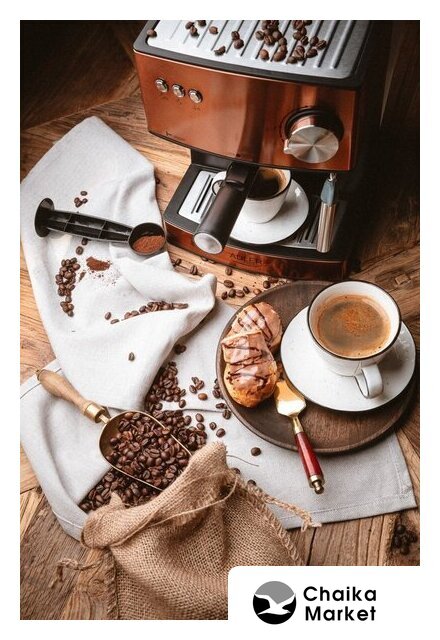 рожковая помповая кофеварка, 850 Вт, корпус металл/пластик, капучинатор ручной, используемый кофе: молотый, цвет серебристый/черный