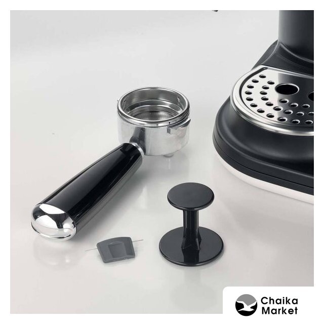 рожковая помповая кофеварка, 1350 Вт, корпус металл/пластик, капучинатор автоматический, используемый кофе: молотый, цвет нержавеющая сталь/черный