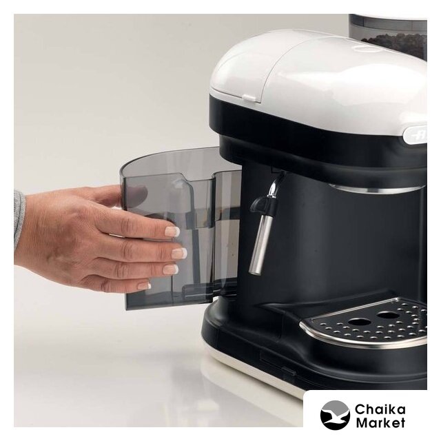 рожковая помповая кофеварка/капельная кофеварка, 1750 Вт, корпус металл/пластик, капучинатор ручной, используемый кофе: молотый, цвет нержавеющая сталь/черный