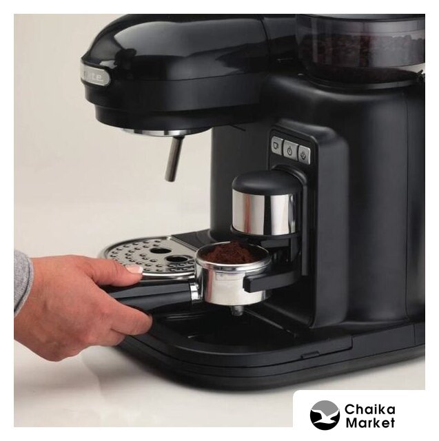 рожковая помповая кофеварка/капельная кофеварка, 1750 Вт, корпус металл/пластик, капучинатор ручной, используемый кофе: молотый, цвет нержавеющая сталь/черный