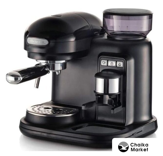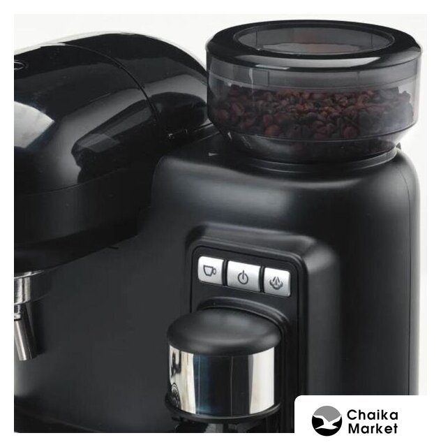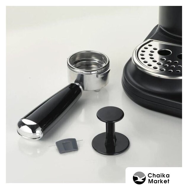 рожковая помповая кофеварка, 1350 Вт, корпус металл/пластик, капучинатор автоматический, используемый кофе: молотый, цвет нержавеющая сталь/черный