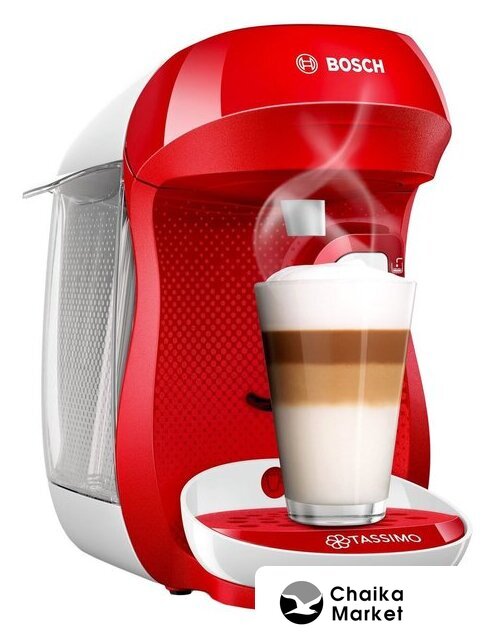 капсульная кофеварка, 1400 Вт, корпус пластик, используемый кофе: капсулы Tassimo, цвет красный