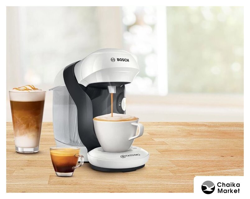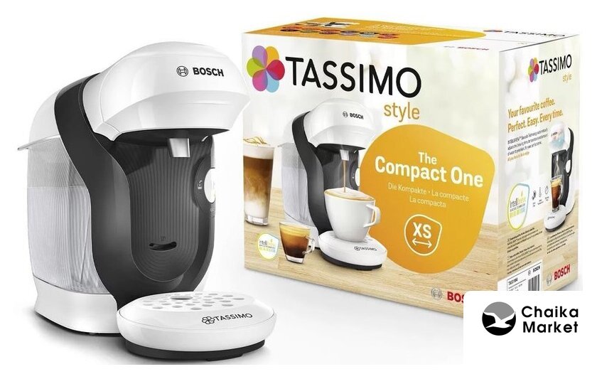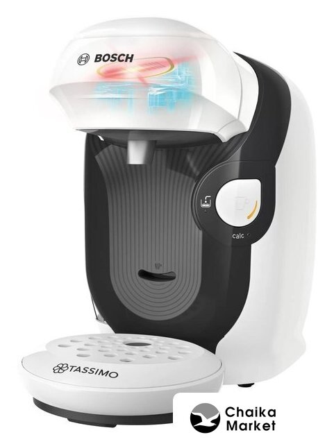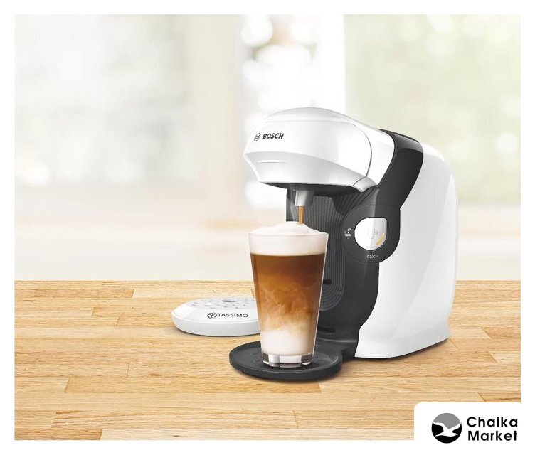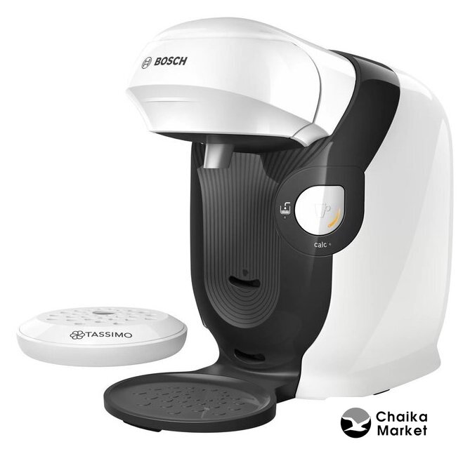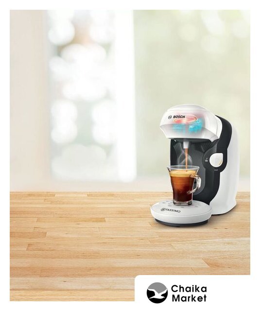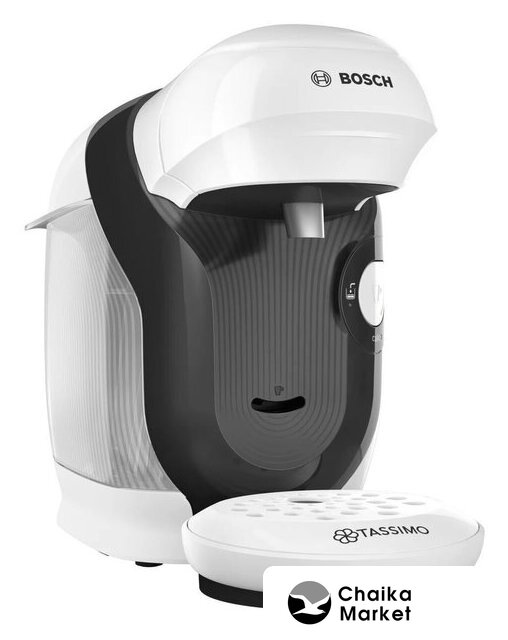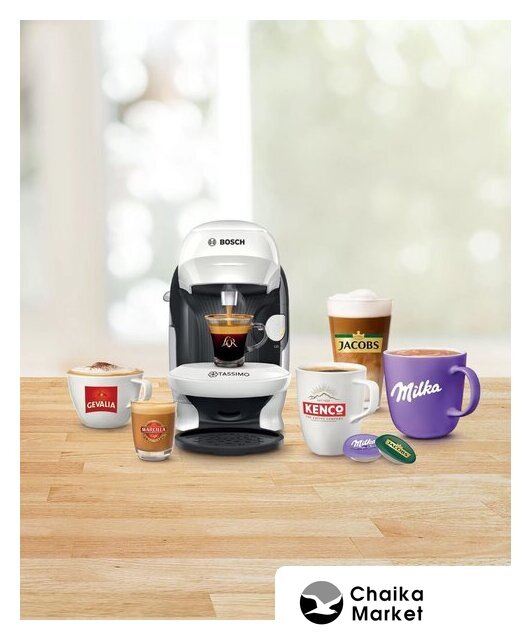 капсульная кофеварка, 1500 Вт, корпус пластик, капучинатор автоматический, используемый кофе: капсулы Tassimo, цвет белый/черный