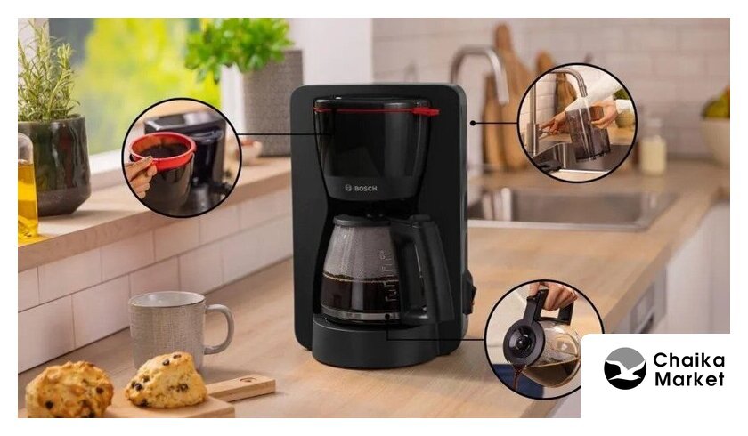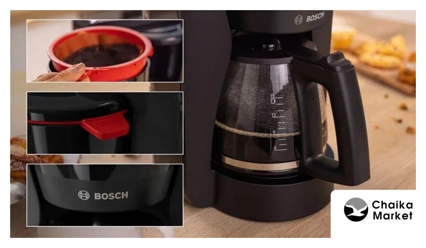 1000 Вт, корпус металл/пластик, используемый кофе: молотый, цвет нержавеющая сталь/черный