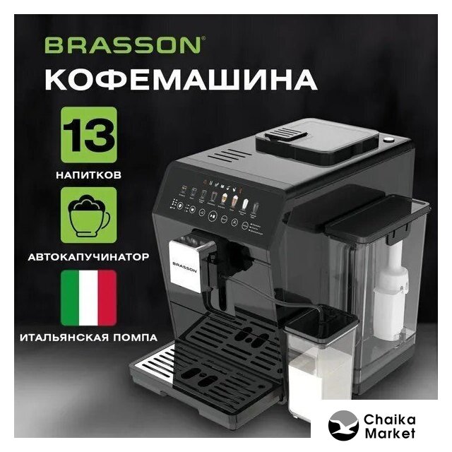 кофемашина, 1450 Вт, корпус пластик, капучинатор автоматический, используемый кофе: молотый/зерновой, цвет черный