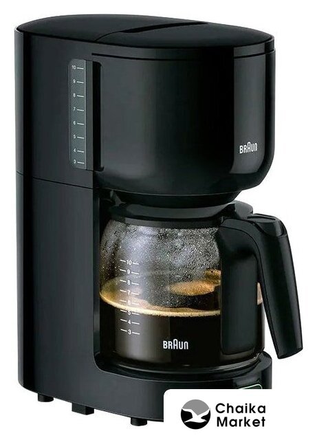 капельная кофеварка, 1000 Вт, корпус пластик/металл, используемый кофе: молотый, цвет черный/нержавеющая сталь