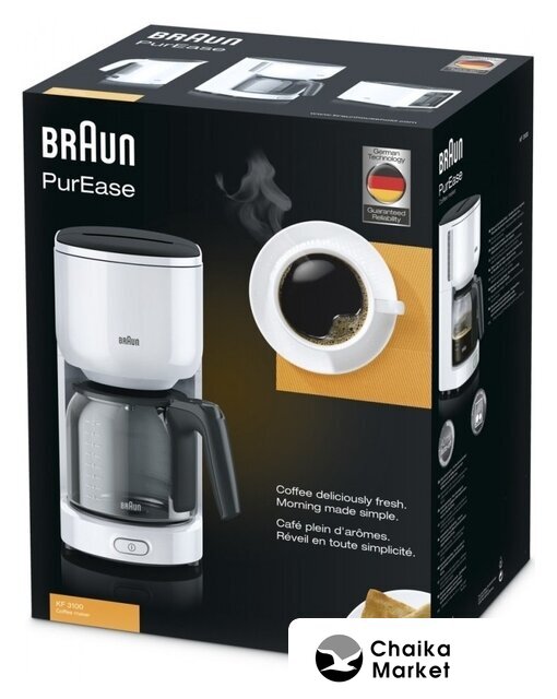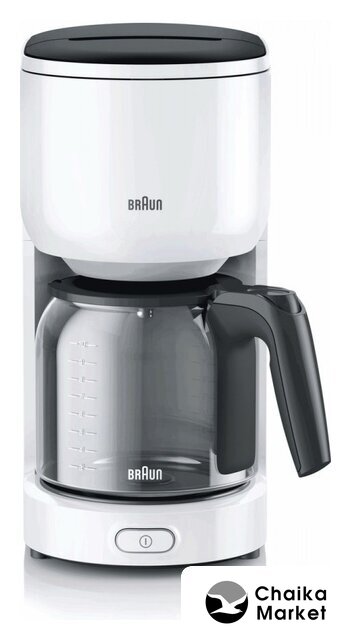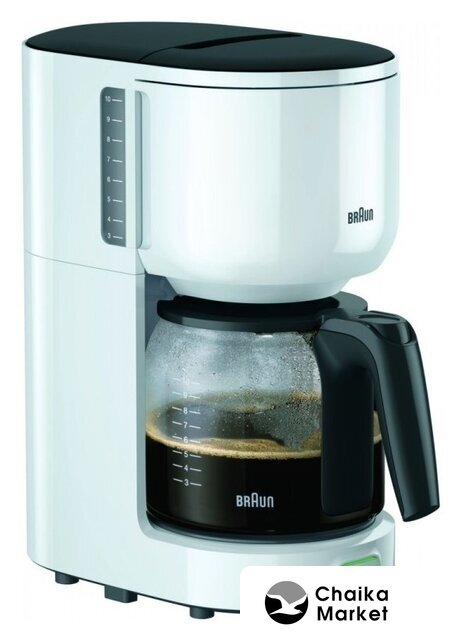 капельная кофеварка, 1000 Вт, корпус пластик/металл, используемый кофе: молотый, цвет белый/нержавеющая сталь