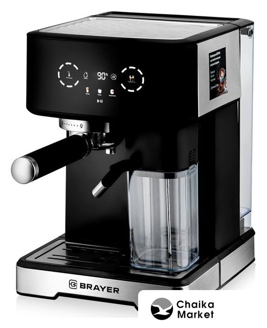 1350 Вт, корпус металл/пластик, капучинатор ручной, используемый кофе: молотый, цвет серебристый