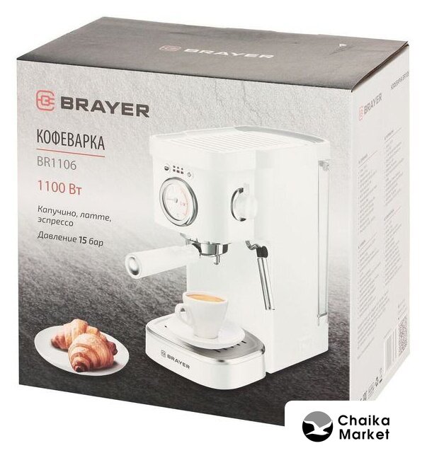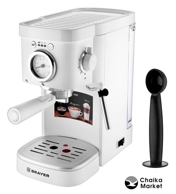 рожковая помповая кофеварка, 1500 Вт, корпус металл/пластик, капучинатор ручной, используемый кофе: молотый, цвет черный