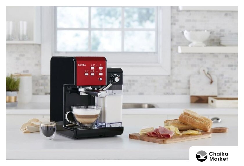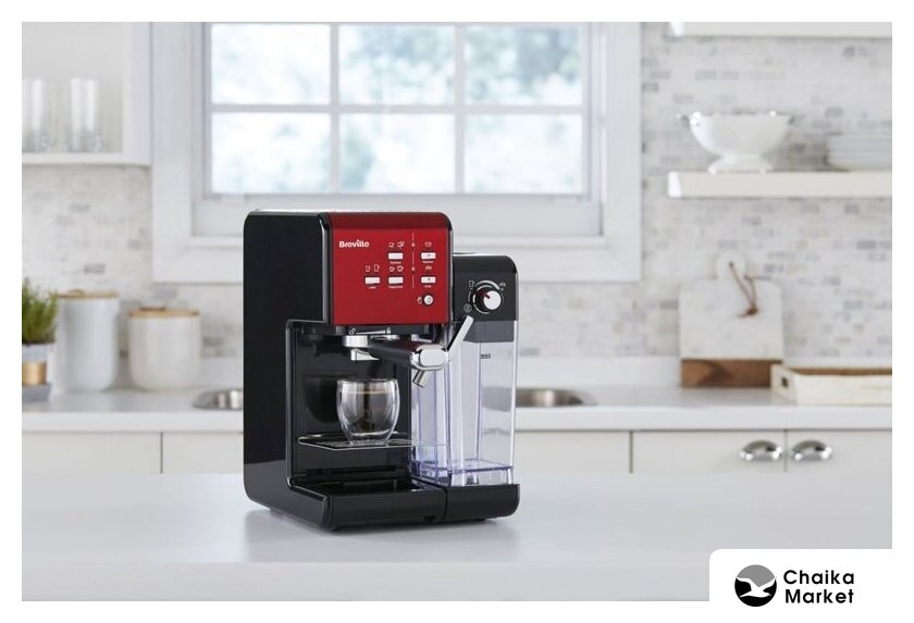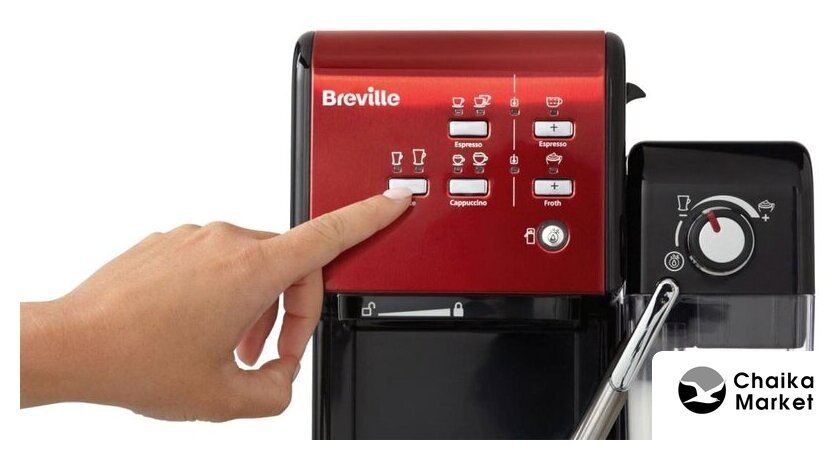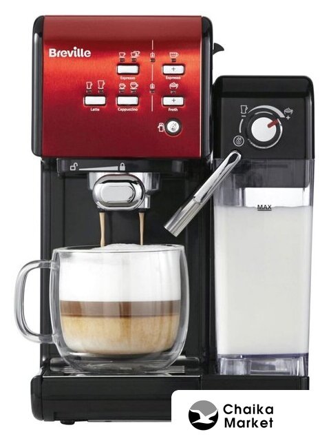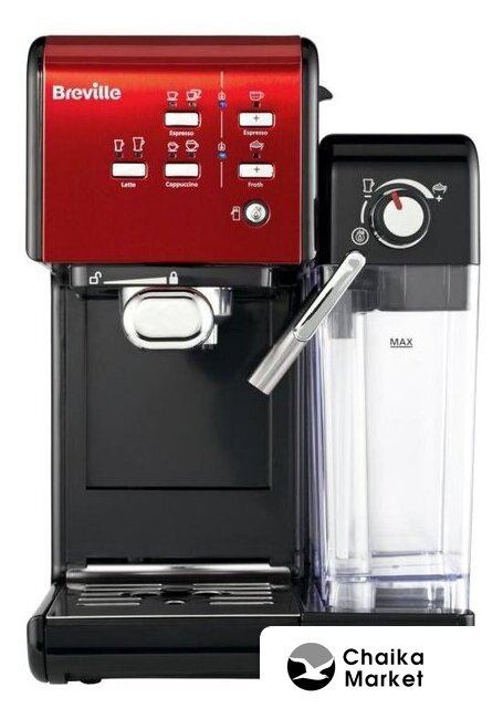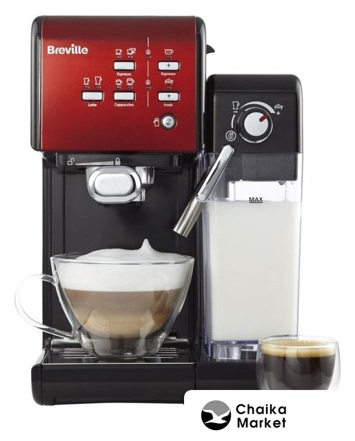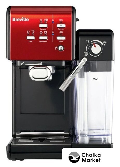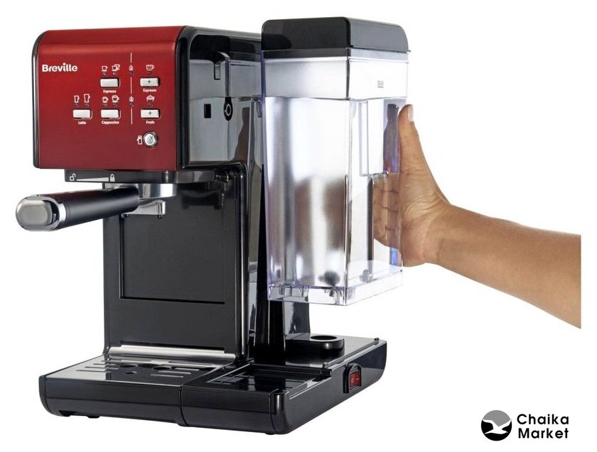 рожковая помповая кофеварка, 1080 Вт, корпус пластик, капучинатор ручной, используемый кофе: молотый/зерновой, цвет красный/черный