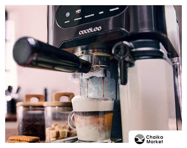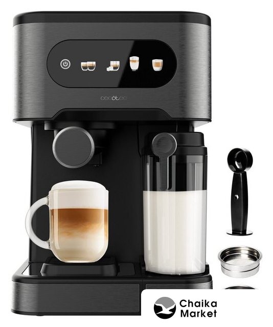 1140 Вт, корпус металл/пластик, капучинатор ручной, используемый кофе: молотый/чалды, цвет серебристый/черный