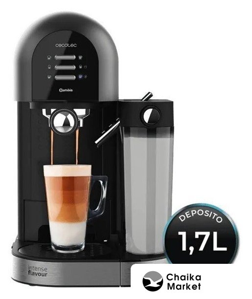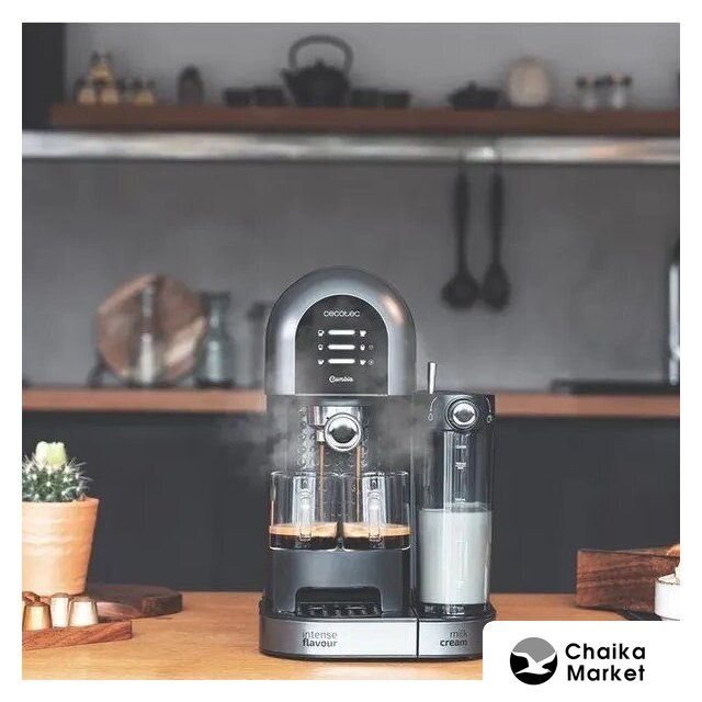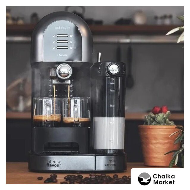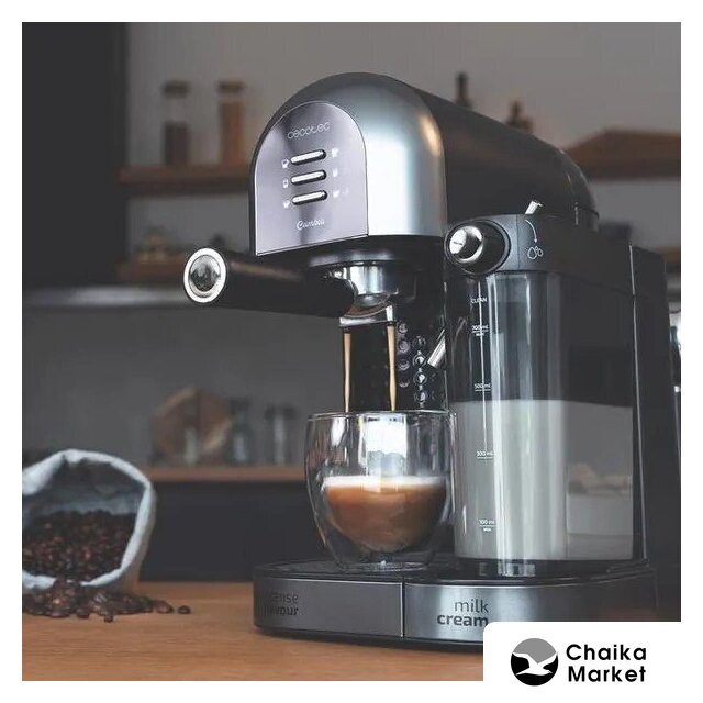 1140 Вт, корпус металл/пластик, капучинатор ручной, используемый кофе: молотый/чалды, цвет серебристый/черный