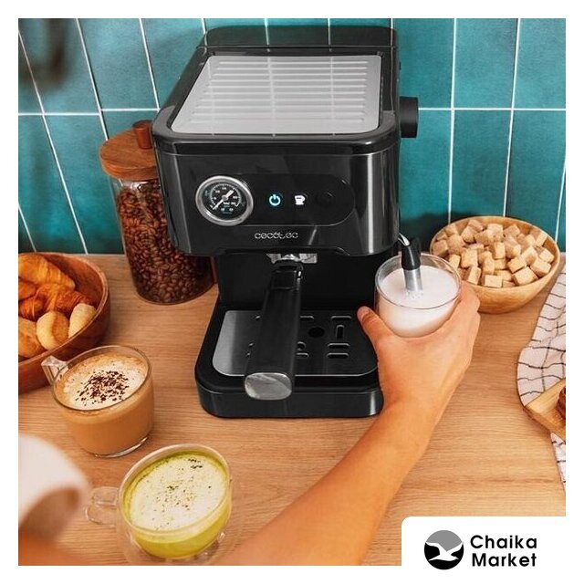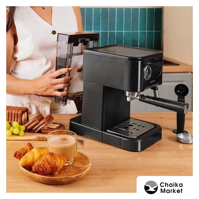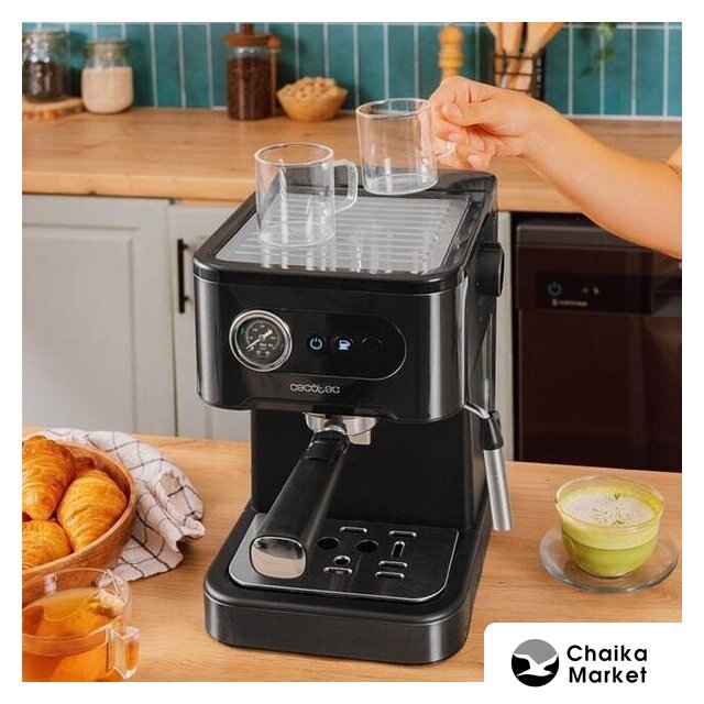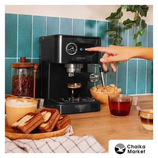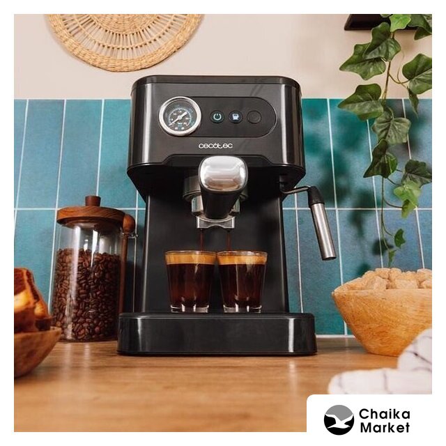 1050 Вт, корпус металл/пластик, капучинатор ручной, используемый кофе: молотый, цвет серебристый/черный