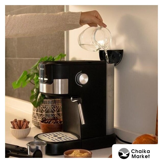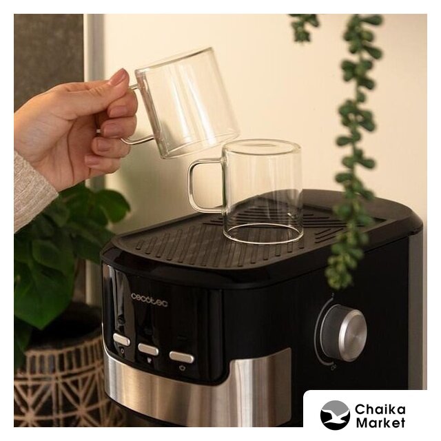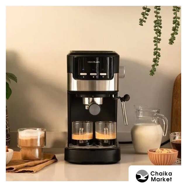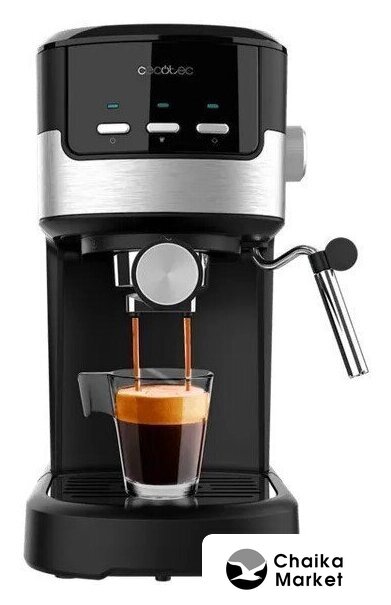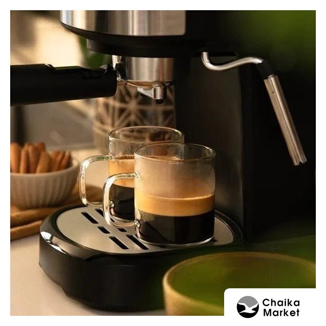 1450 Вт, корпус металл/пластик, капучинатор ручной, используемый кофе: молотый, цвет серебристый