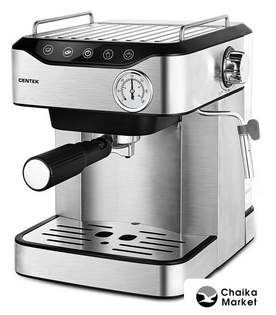 рожковая бойлерная кофеварка, 1250 Вт, корпус металл/пластик, капучинатор ручной, используемый кофе: молотый, цвет нержавеющая сталь/черный