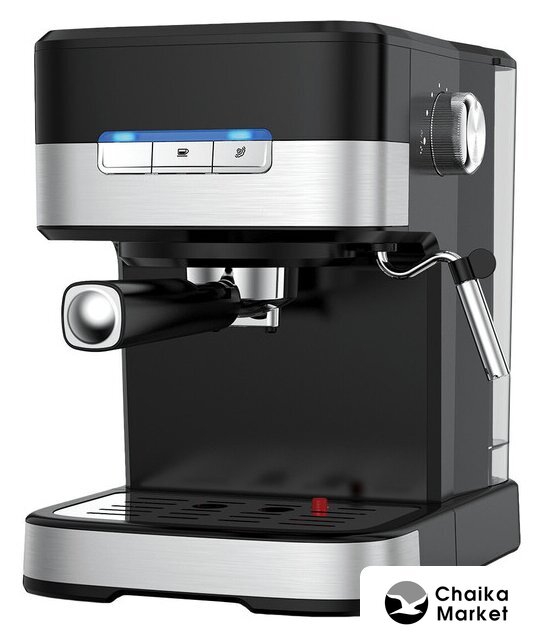 рожковая помповая кофеварка, 850 Вт, корпус металл/пластик, капучинатор ручной, используемый кофе: молотый, цвет нержавеющая сталь/черный