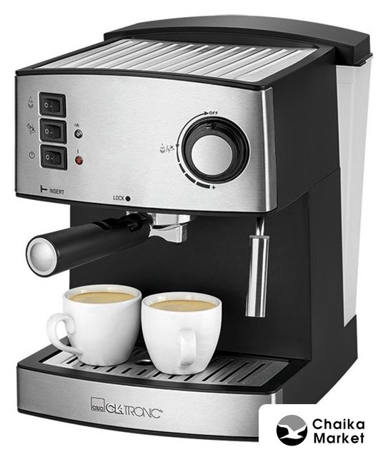 рожковая помповая кофеварка, 850 Вт, корпус металл/пластик, капучинатор ручной, используемый кофе: молотый, цвет нержавеющая сталь/черный